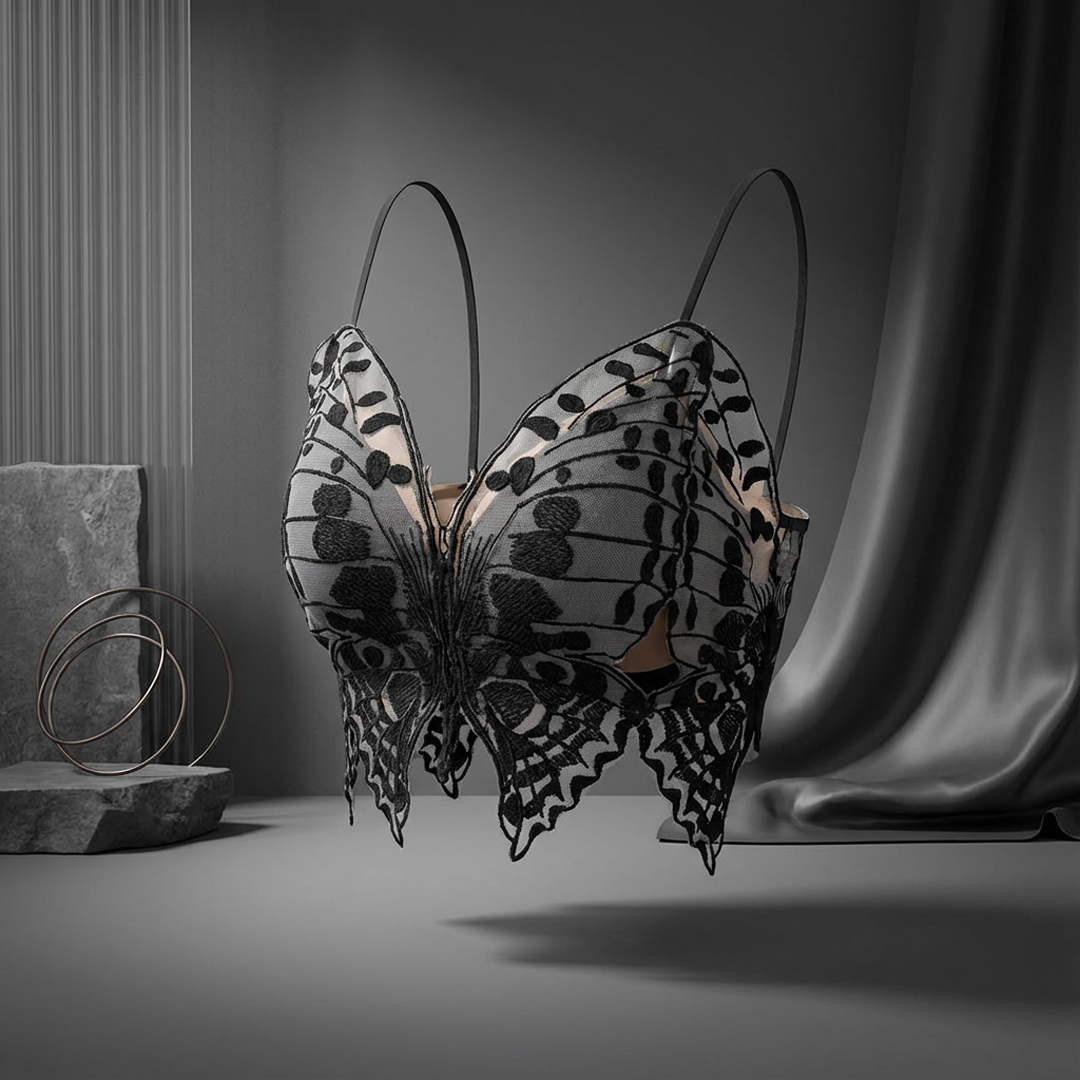 Butterfly Lace Bralette – Ultra Elegant Embroidered Mesh Top | Premium Party & Daily Wear Bralette